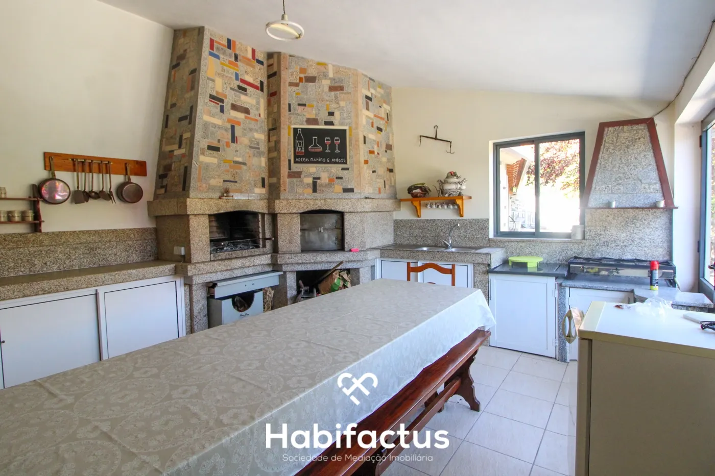 - Espaços Funcionais: Vários espaços para arrumos, lavandaria, e uma cozinha exterior coberta, perfeita para qualquer estação do ano, equipada com churrasqueira, forno a lenha, fogão a lenha e fogão a gás.