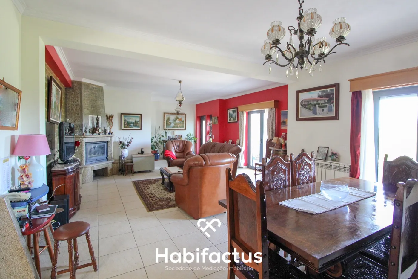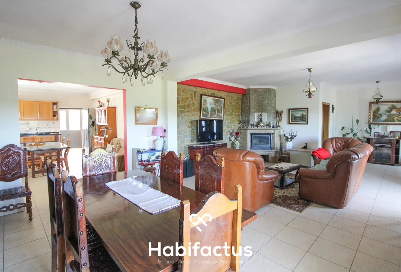 - Sala de Jantar e Sala de Estar: Espaços amplos e aconchegantes, complementados por uma lareira com recuperador de calor, criando o ambiente perfeito para momentos em família.