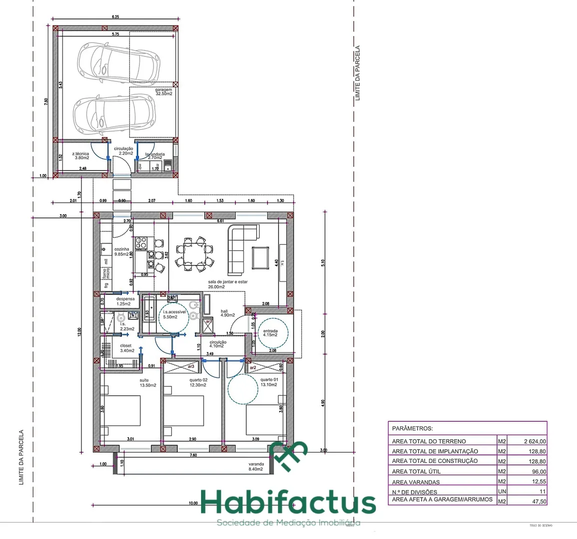 Terrain de 2624m2 pour la construction. Idéal pour une villa de deux étages ou de plain-pied.